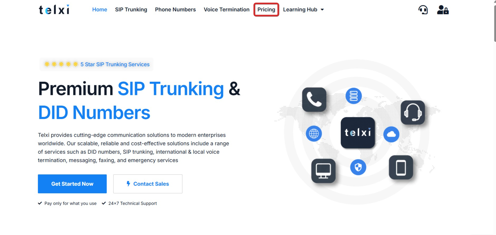 Select the region based on your location: EU - Telxi - Pricing EU , UK - Telxi - Pricing UK , Global - Telxi - Pricing Global